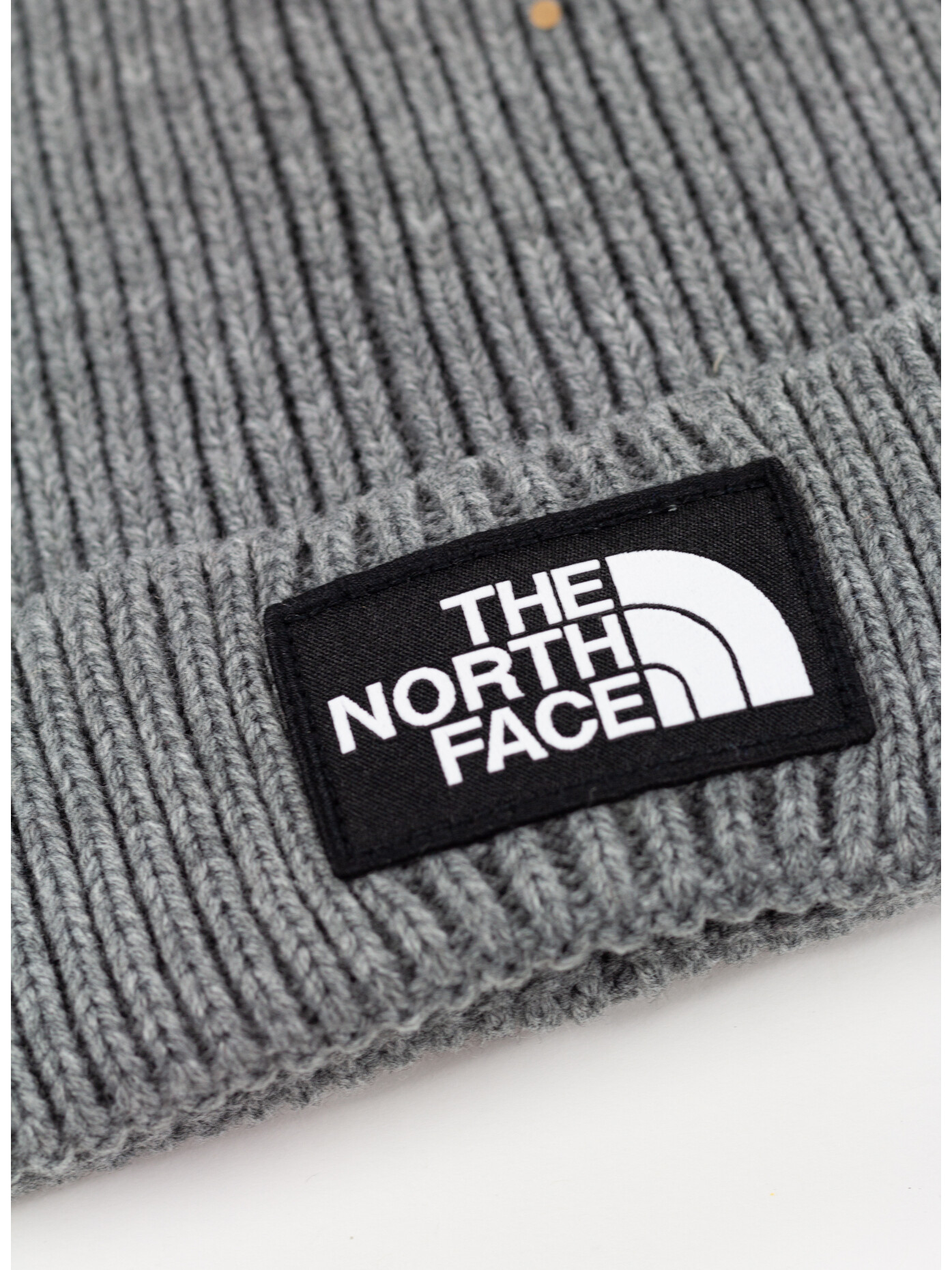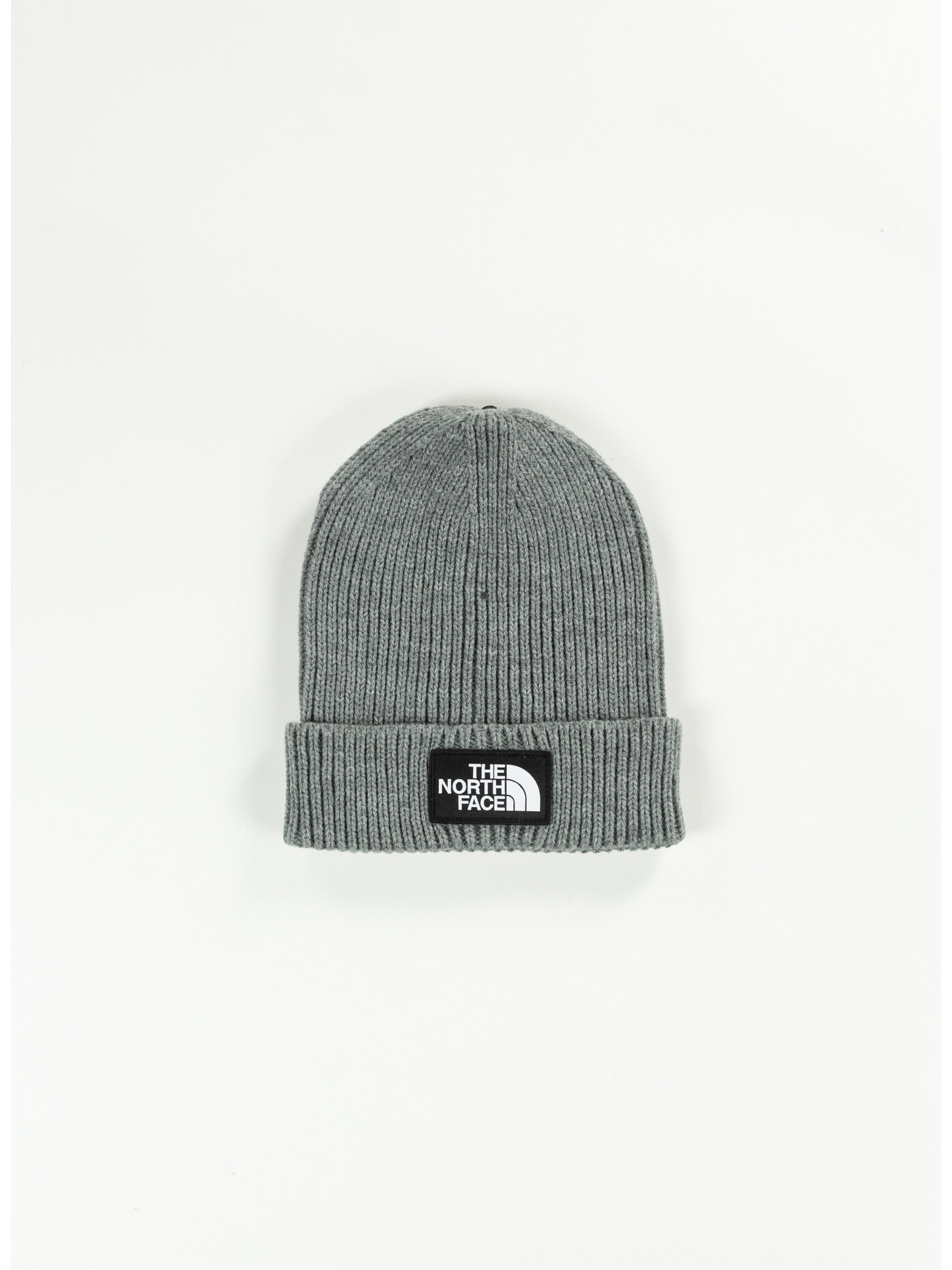 Cappello in maglia unisex a costine firmato The North Face con risvolto e logo in tessuto cucito sul davanti.
