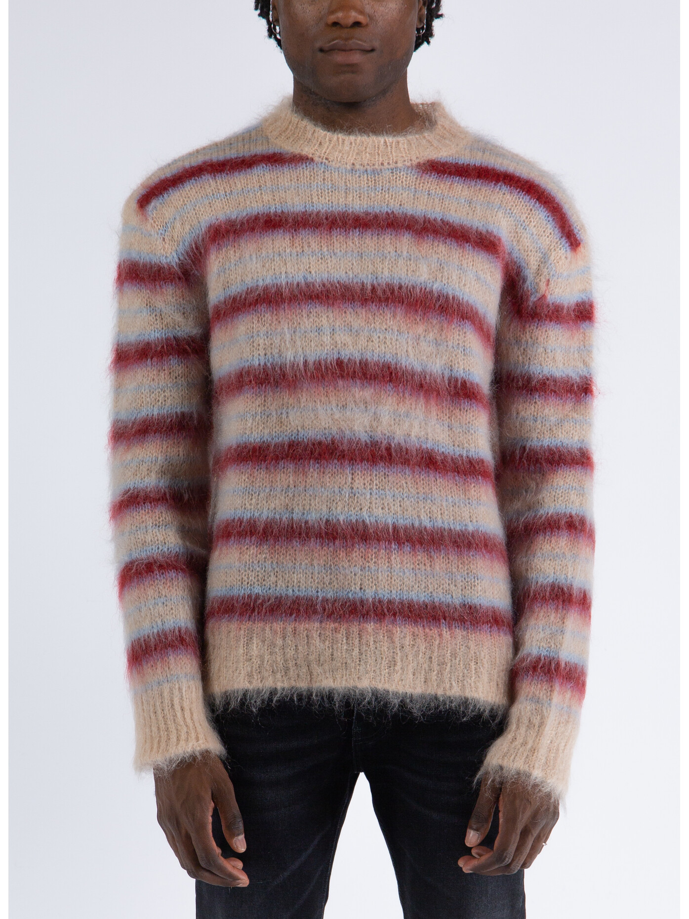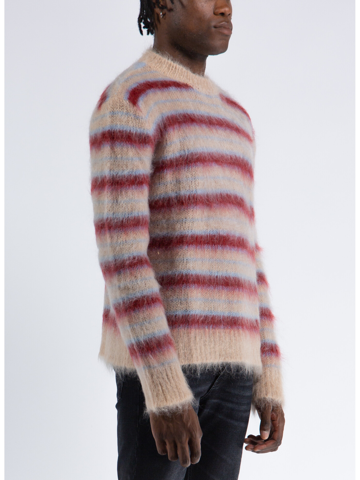 Maglione girocollo a righe da uomo.