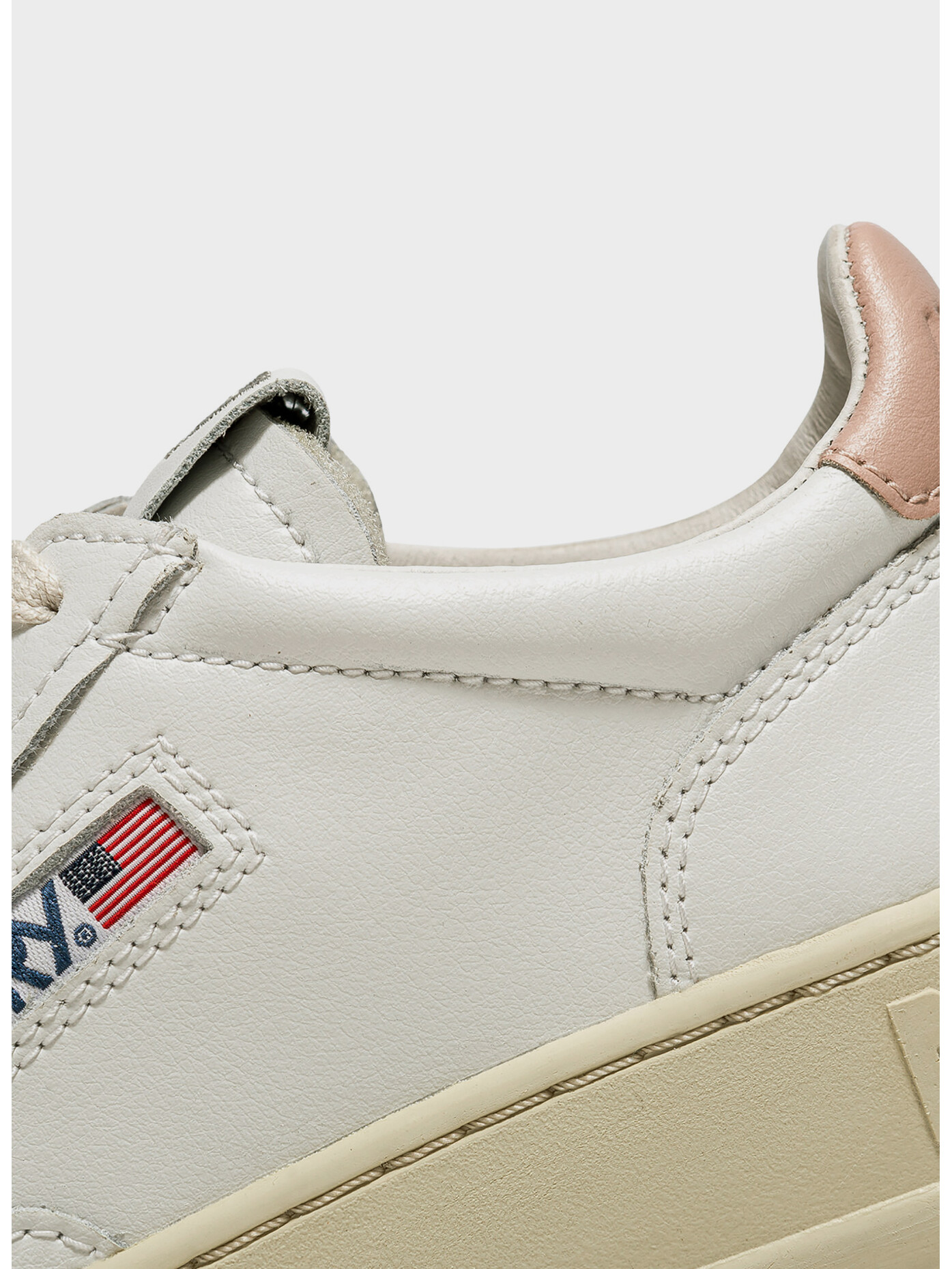 Tomaia in pelle con impunture che definiscono gli inserti multistrato in tono.