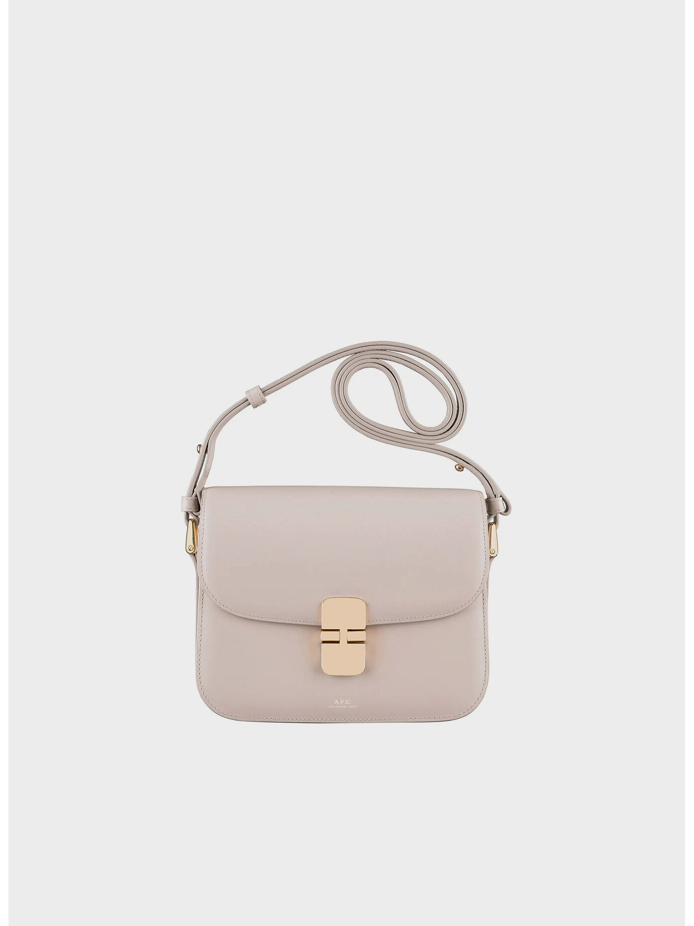 Logo "A.P.C. rue Madame Paris" color oro impresso sul davanti.