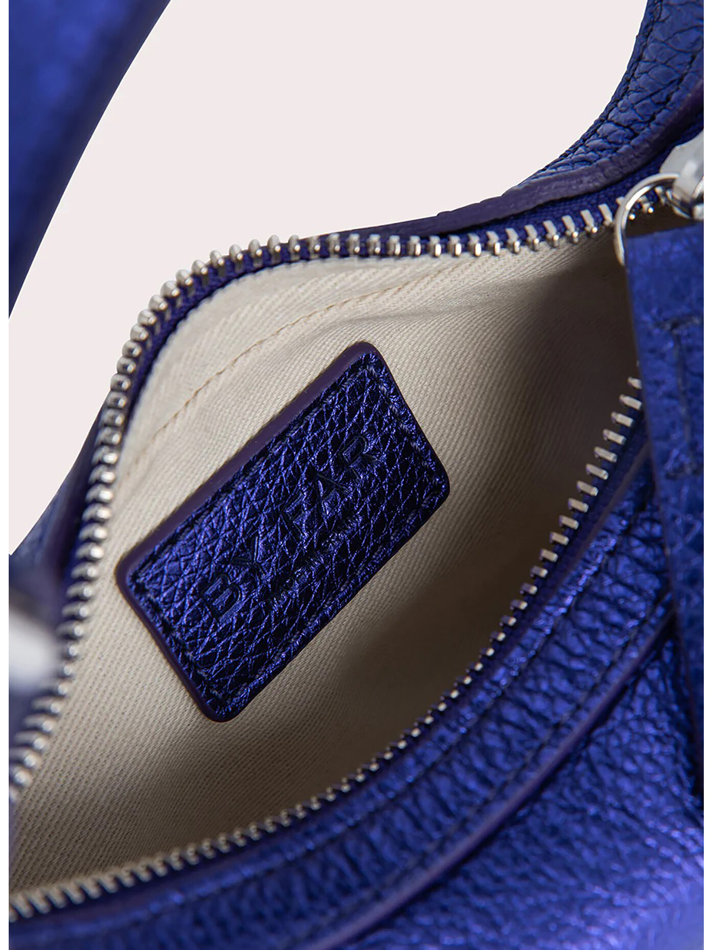 Borsa da donna By Far realizzata in pelle martellata dalla finitura metallizzata.