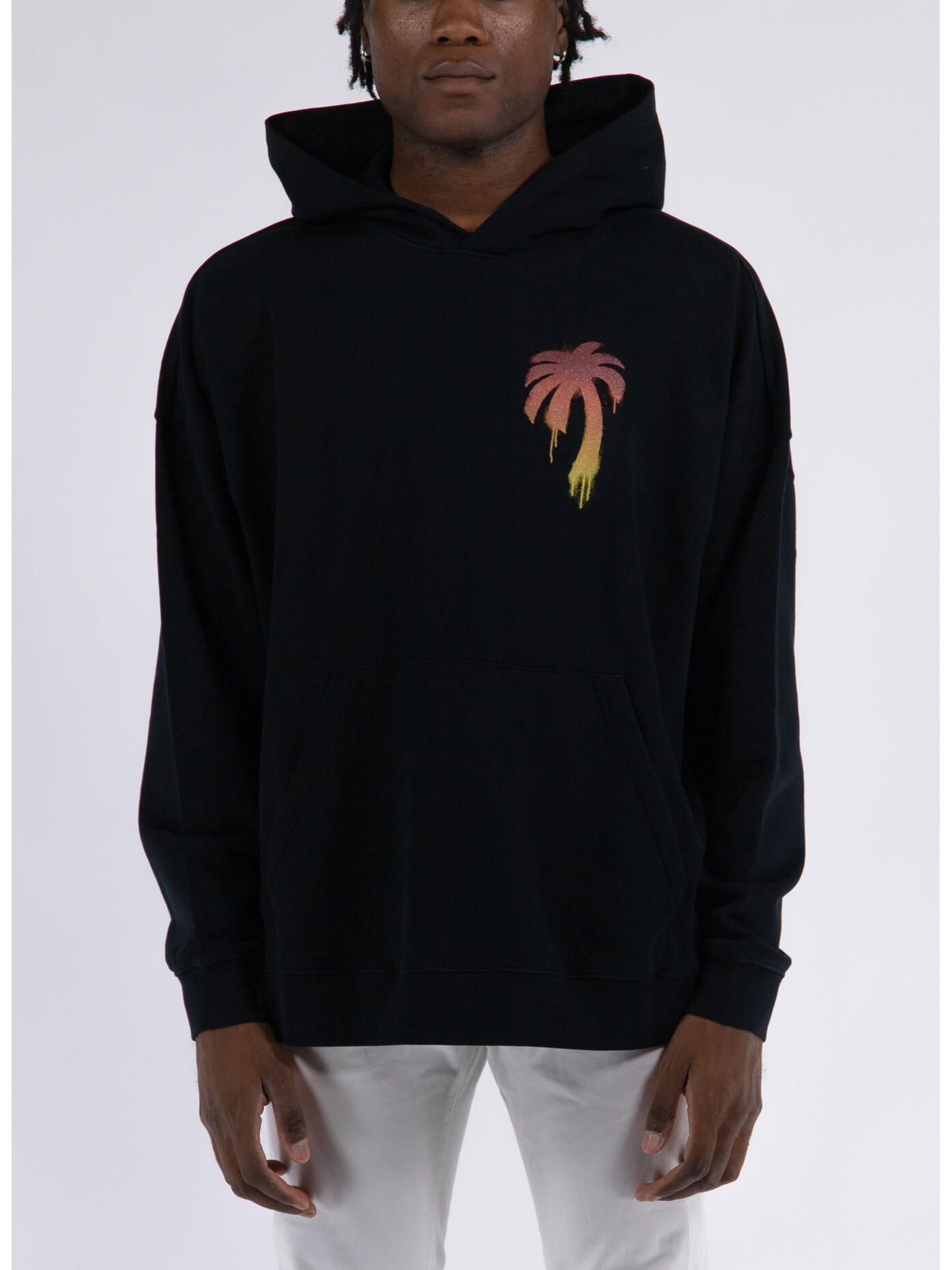 Felpa da uomo realizzata in french terry misto cotone con logo Palm Angels sul petto a sinistra e in formato oversize sul retro.