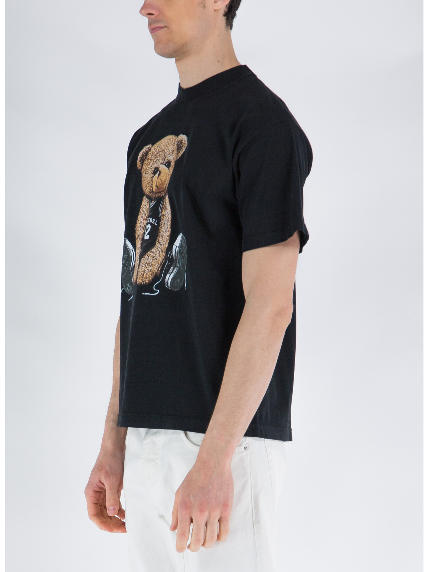 Taglio regolare con maniche corte, girocollo e stampa anteriore con orsetto.
